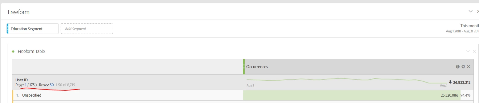 When I run the query I get a count of 8,719. This result is over 175 pages of 50 rows, see screenshot 1.
