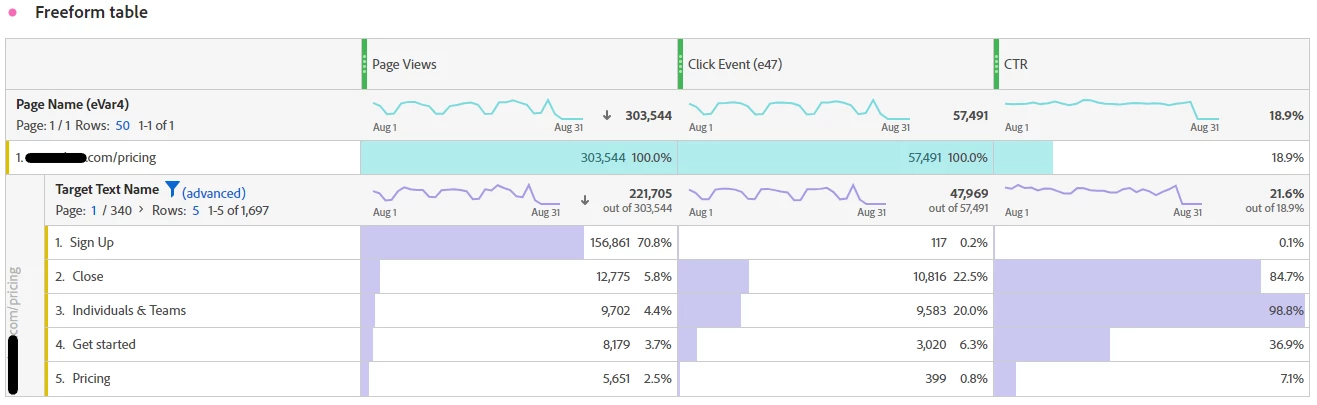 EX: The CTR of "Individuals & Teams" should be 3.2%