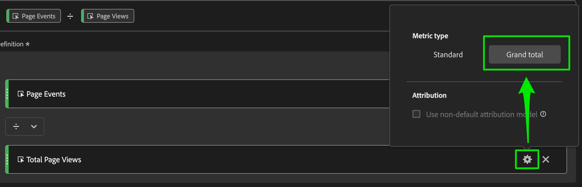 The calculation is clicks / page views, but the issue that I run into is that it defaults to taking page views on each dimension instead of the page itself