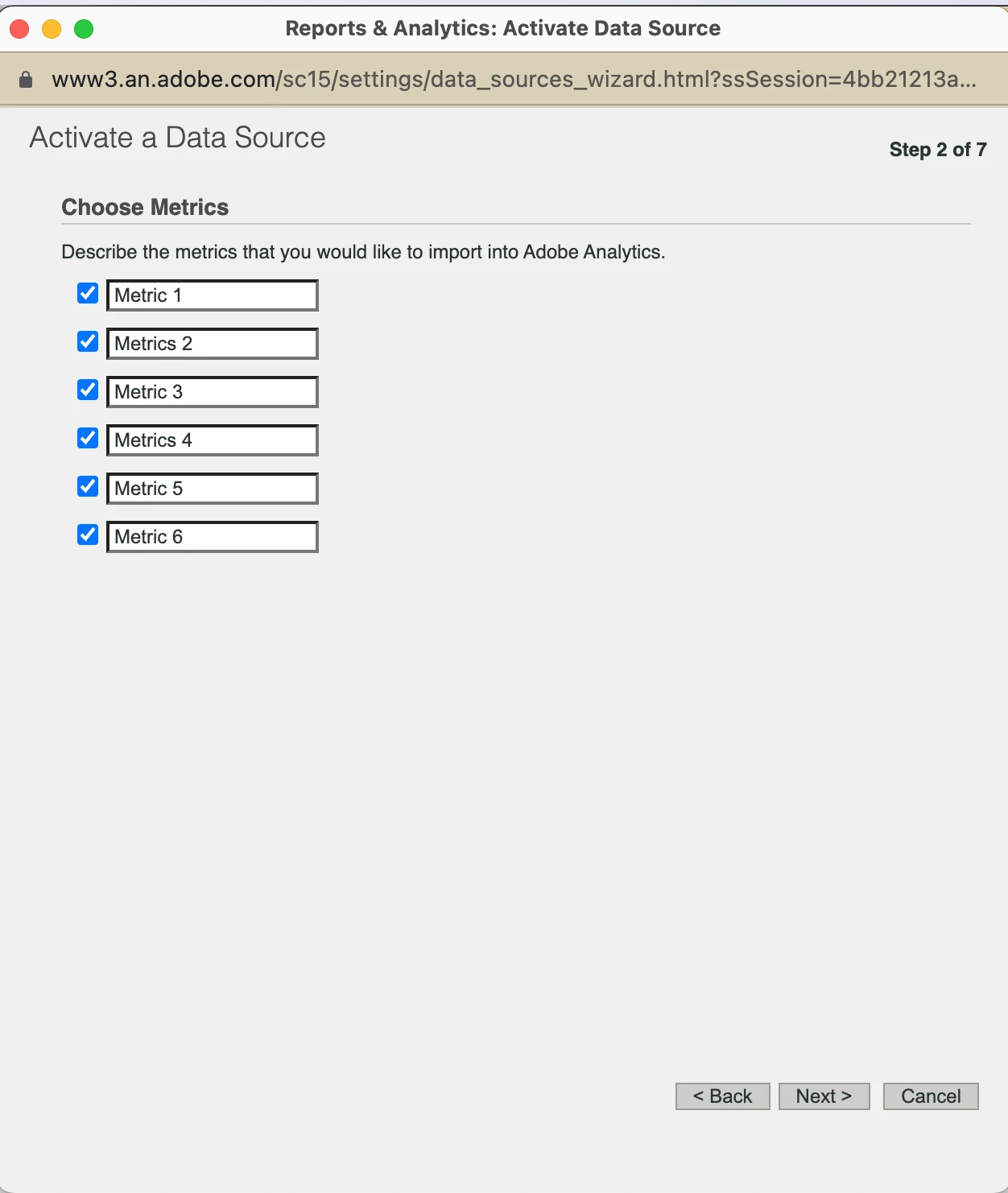 I am looking to automate a file upload to Adobe Analytics data source FTP. Upon going through the activation wizard, it seems like I can only configure 3 events, is there a limitation!? There are over 10 events I am looking to upload in a single file, how do we get around that?