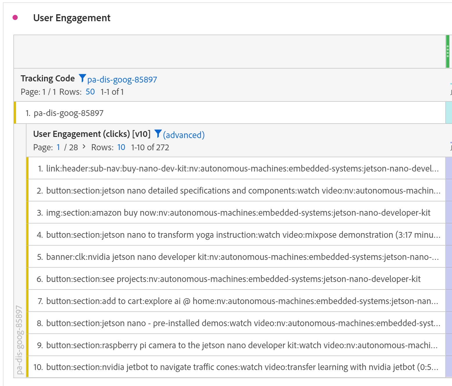 I am using User Engagement (clicks)(v10) to see what visitors click on a webpage. However, each link/button come as a long text form (see following picture) that make it so hard to understand which particular link/button is it on the webpage.