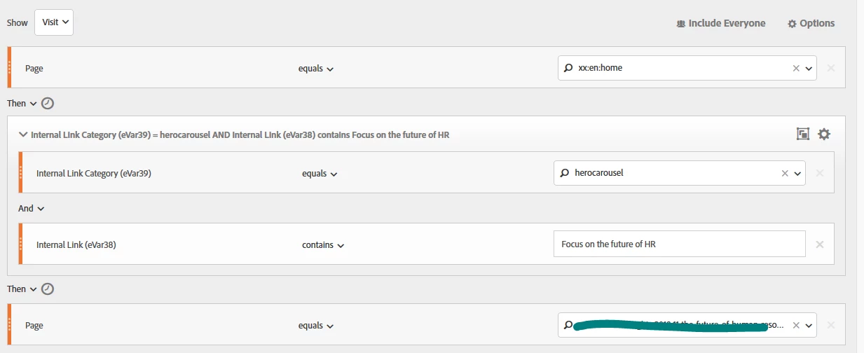 I'm looking to get click-through rate from page A->pageB using the condition that the user should have clicked on the banner/hero carousel present on page A.