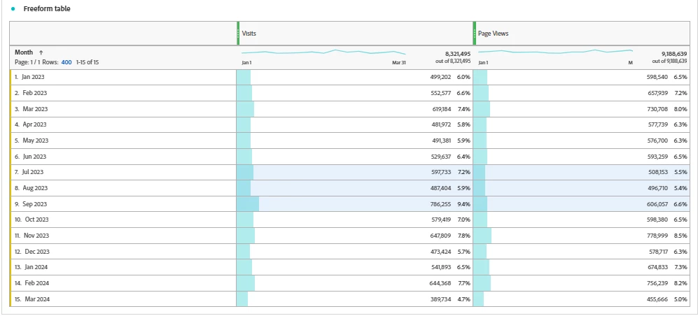 For one of my client we are getting visits no higher than the pageviews for "july" and "sep" month.