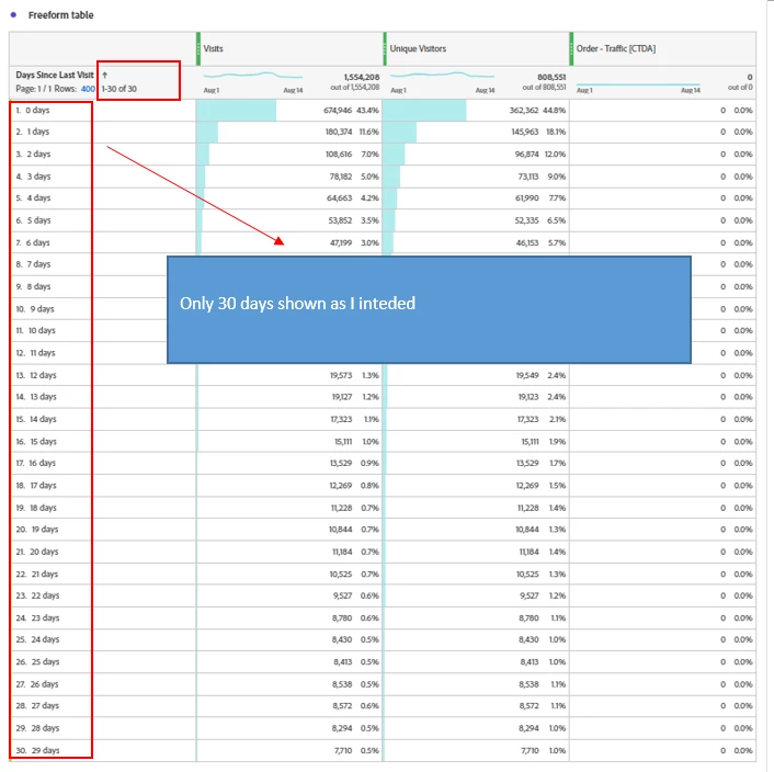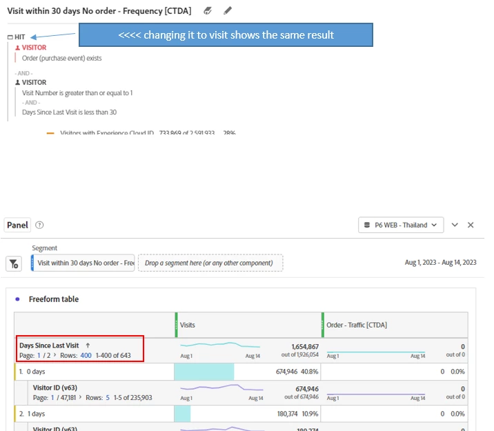 case3 is that I want to see "day since last visit (how many days past between current visit and last visit)" amongst hit traffic of visitors having conditions below