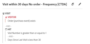 - day since last visit less than 30 in visit or hit level