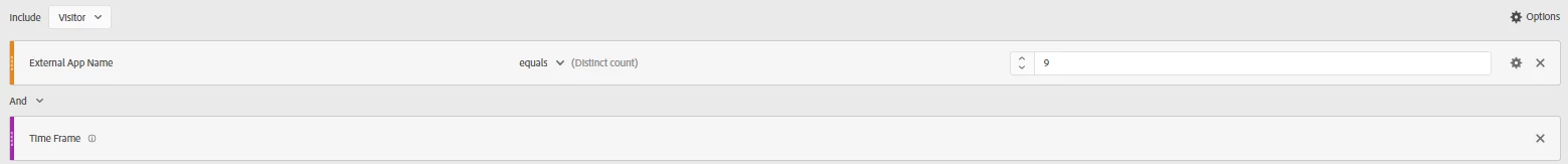 The visitor should fall within the 7 app segment for that timeframe selected (9 apps opened in their lifetime)