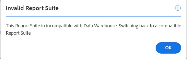 Warning on selecting DWH with Virtual Report suites