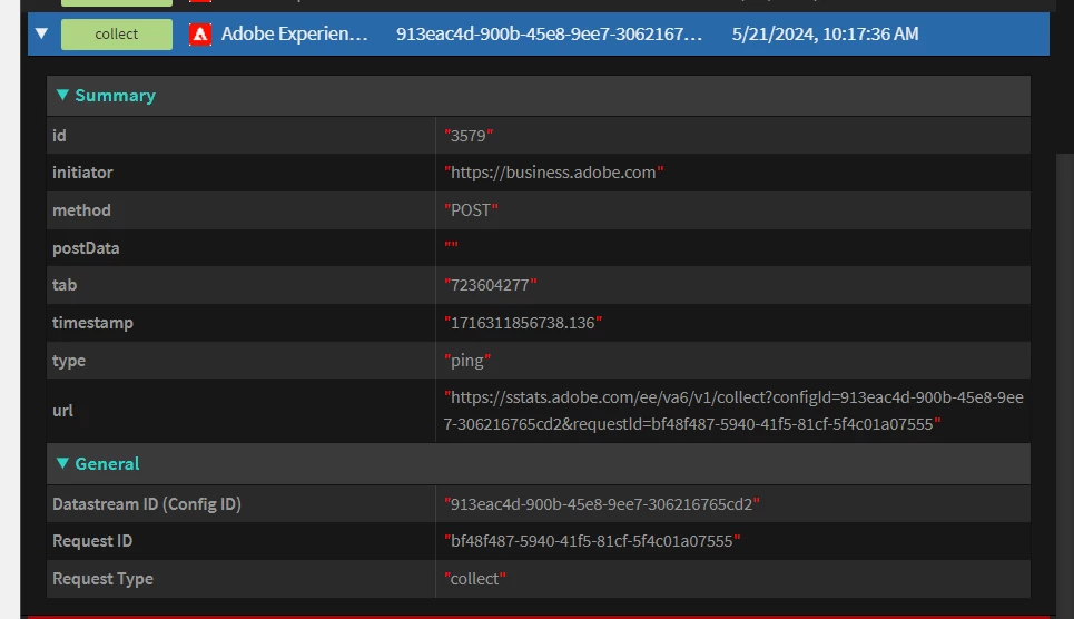 I have check box enabled on  'enable click data collection' in webSDK extension to track download/exit link. when i clicked on exit or download link, I can see 'collect' call instead of 'interact' call in the network tab. and I dont find a way to differentiate between two collect call of exit link and download link.