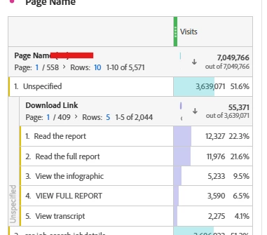 In both these scenarios you would get the previously mentioned default behaviours in Adobe Analytics, inflating your Page Views and causing URLs to appear in the page name variable.