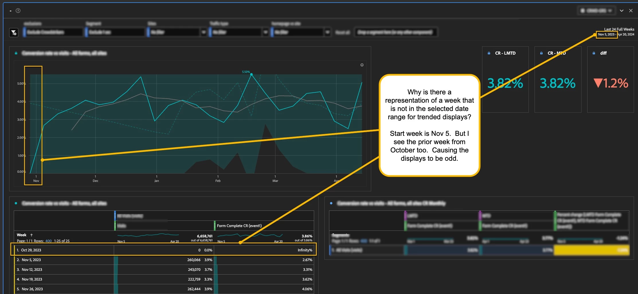 Odds are it's one of the metrics in your columns causing the issue... I've had this before... it seems like the Entries is one of the offenders quite often in my reports (and also any calculated metric that uses Entries - like Bounce Rate).