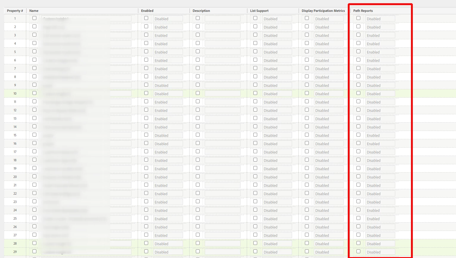 I am trying to create props in Adobe Analytics and I am seeing this column called Path Reports in the table