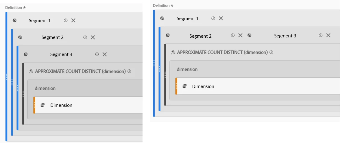 Seeing following 2 ways, the segment 2 and segment 3 are applied by using different hierarchy.