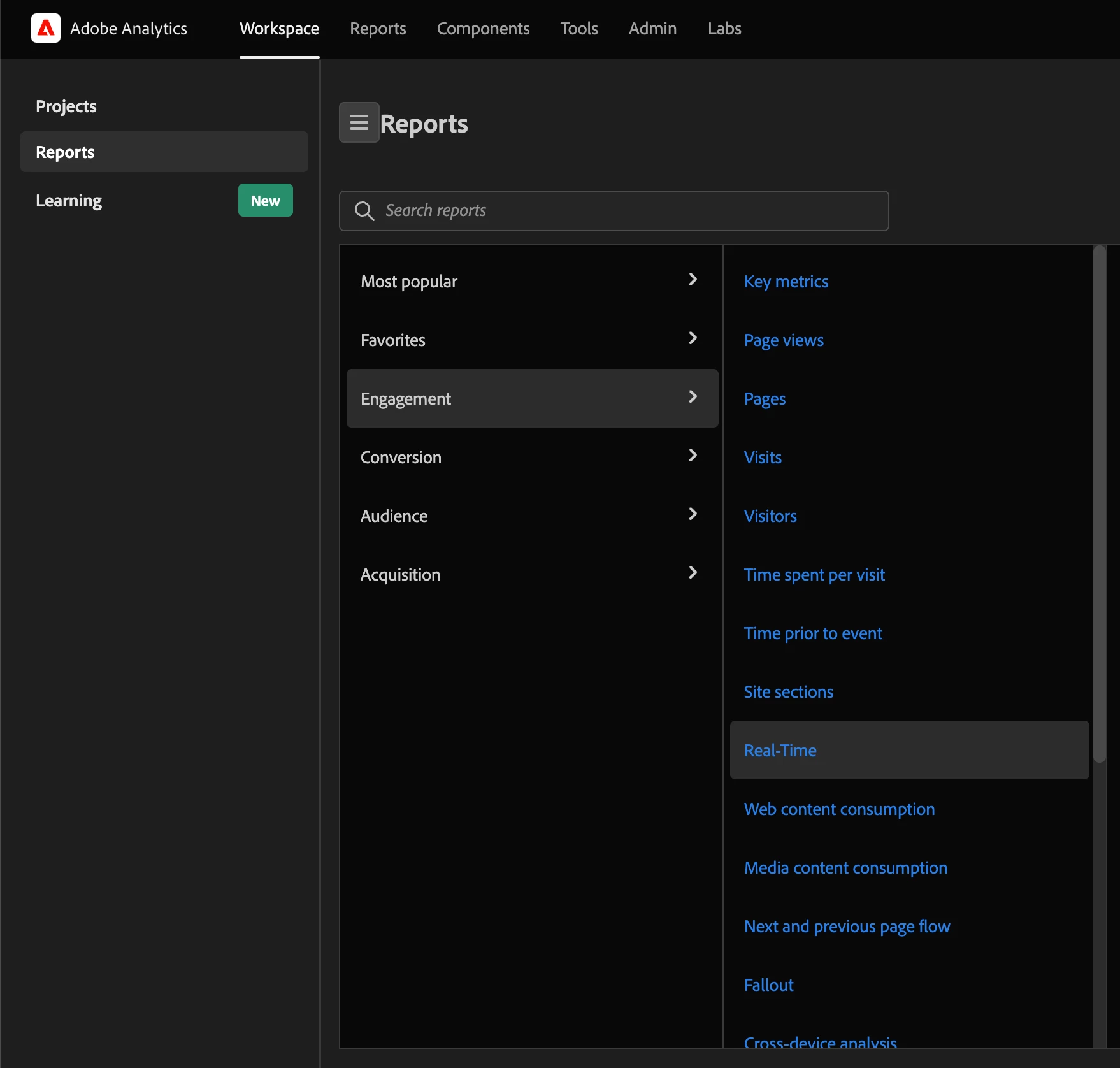 Workspace - Reports - Engagement - Real-Time