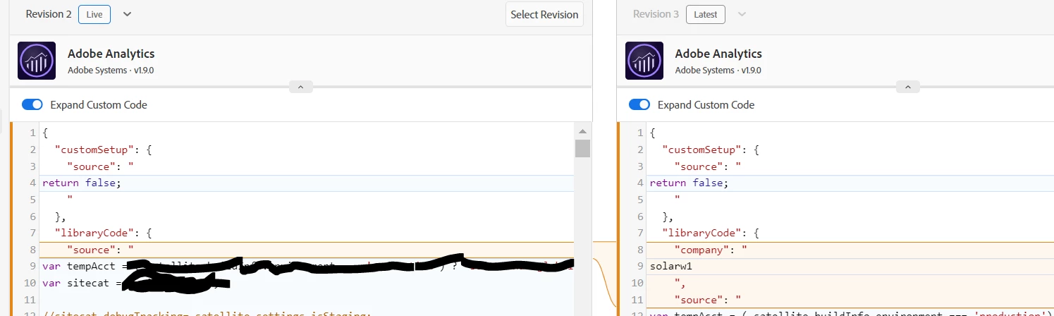 The Library Code... this is all generated by what you place into the extension.... the "company" key, I believe comes from Adobe (basically the alias/id for your company under which your suites sit), this doesn't need to be explicitly set, because in this case, the extension manages it; likely getting the value based specifically on the suite you have chosen.