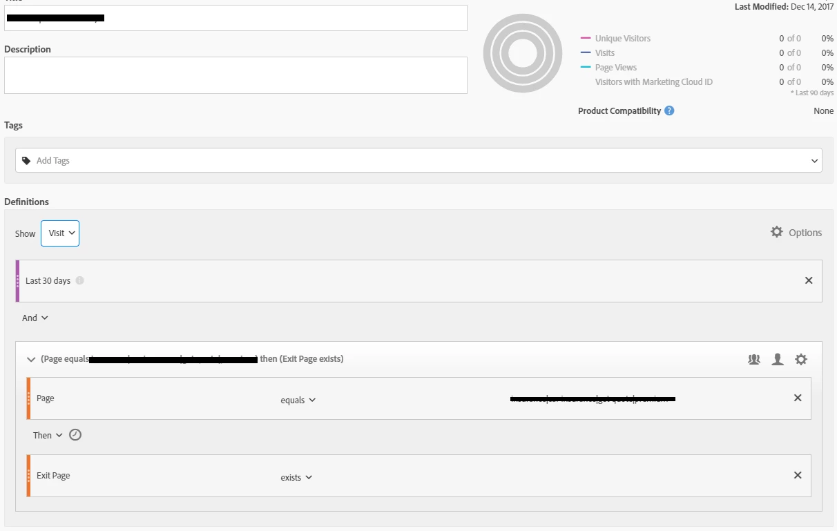Currently the segment isn't quite right so I do need help with that, but for some reason when I remove the Entry Page exists at the bottom of the segement it stops working. WHYYYY?