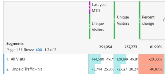For Unpaid Traffic hit Percentage Change should be -2% instead of -11%