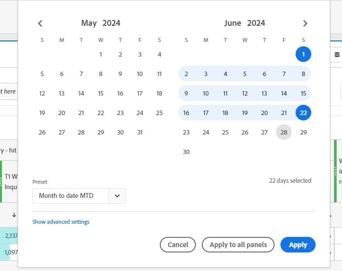 For eg: On 28th June I want to check MTD data, then it should take data upto 27th but it's taking data till 22nd June only.