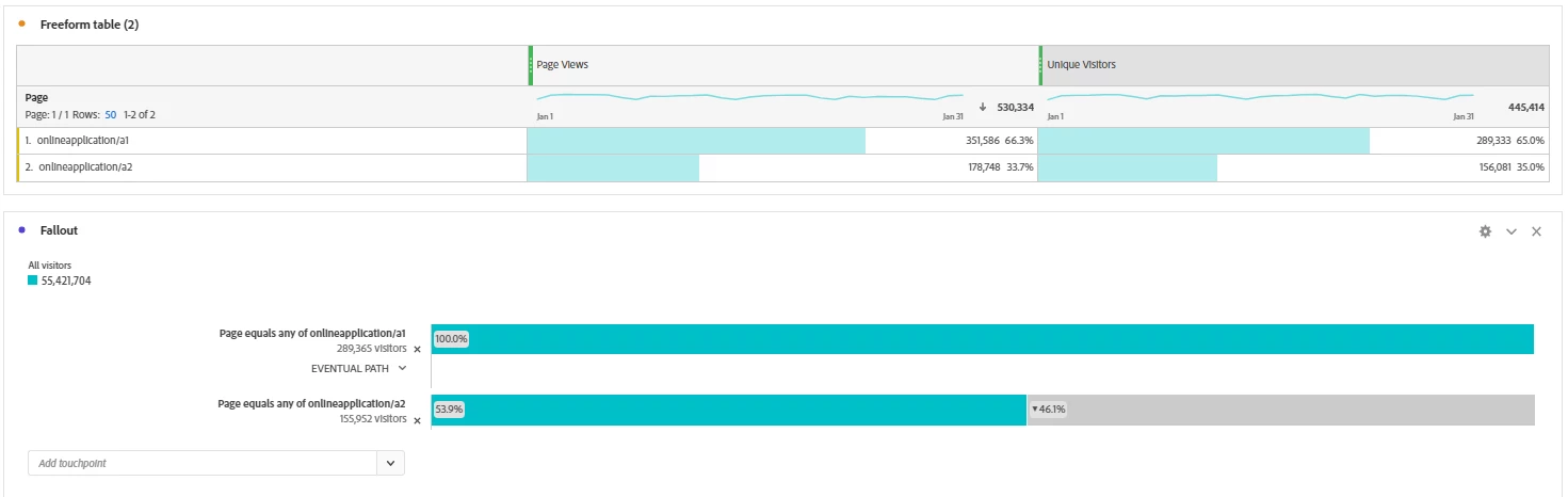 Why is there a difference between unique visitors in free form for the same page vs unique visitors in fallout report?