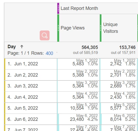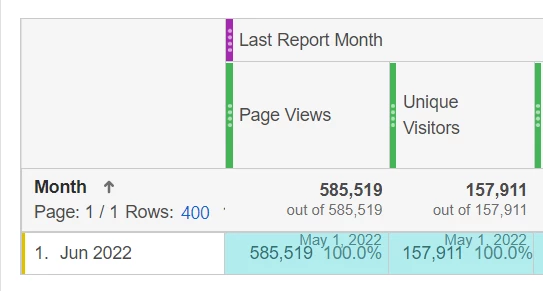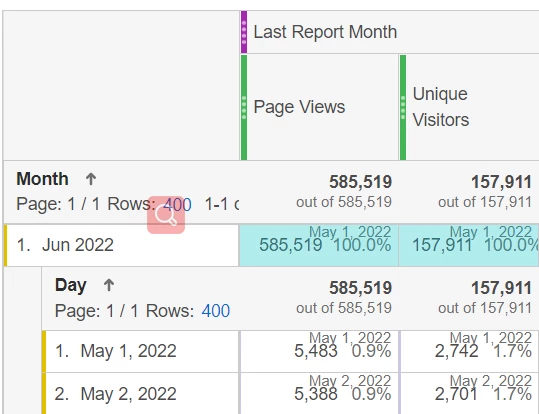 But I notice that when I use the default segment of "last report month", the total by-day data was not equal to the by-month data for nearly all the metrics.