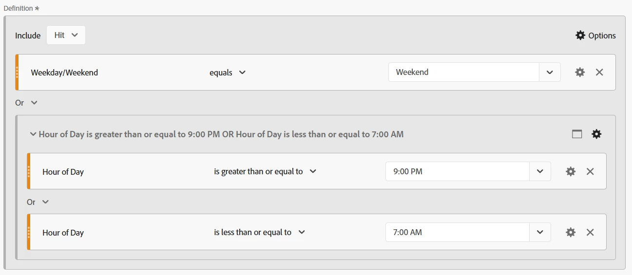 Hopefully adobe makes it easy to select date range/days of week within the UI sometime soon 🙂