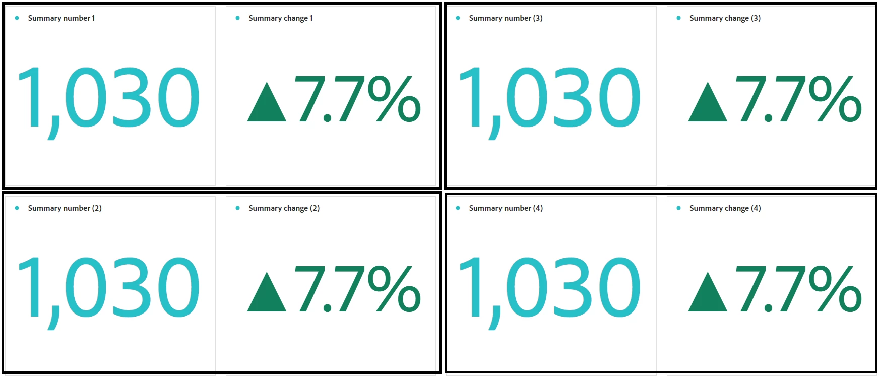 Sample data: obviously just the same two summaries in each 'group' but it's easy to see in this display that there are four separate chunks of information.