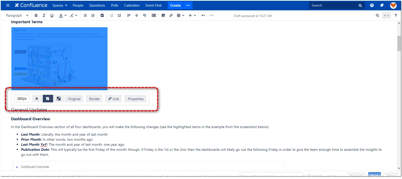 Then, once the image is on the page, I am able to choose how I would like to treat it.  I can control its size, border, add links and some additional properties, if I want.
