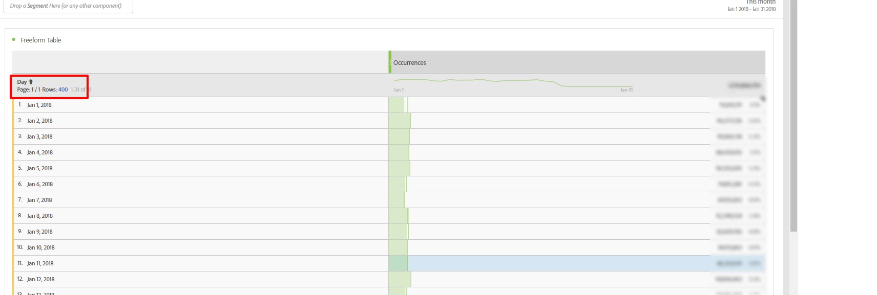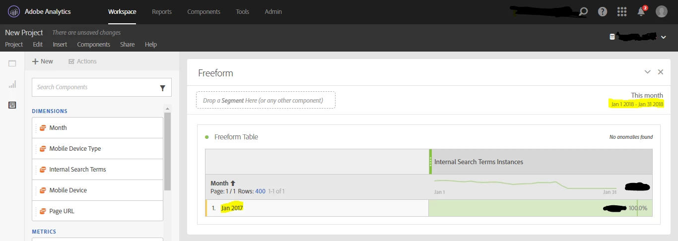 Under Workspace, when I select date range as 1-31Jan'18, the rows are appearing as Jan'17. Is this an issue or something to do with settings?