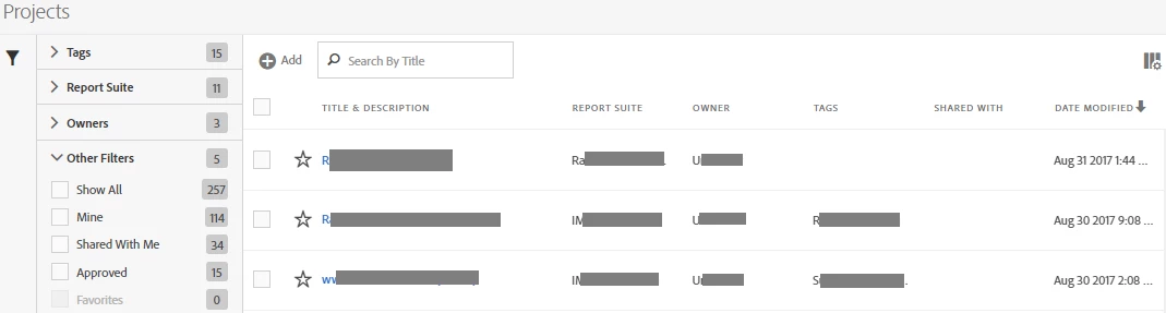 looking at the current project manager in adobe analytics i can see a lot of improvements. it currently looks like this:
