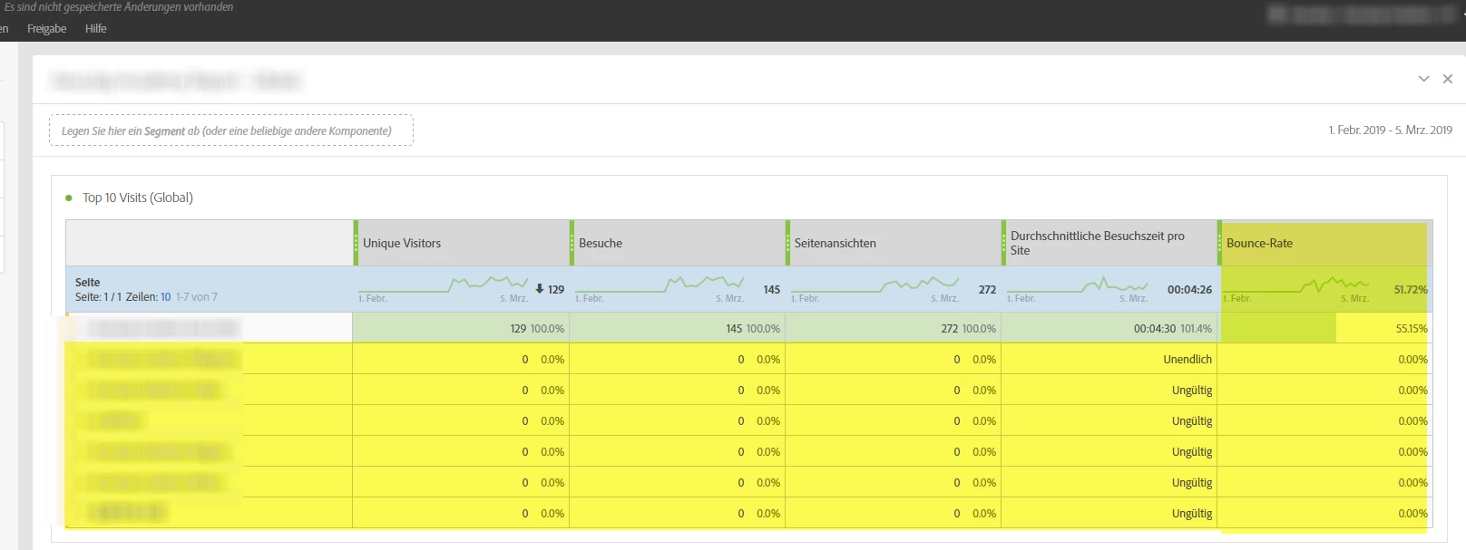 adding another metric like "bounce-rate" -> another new sites appear (yellow marked):