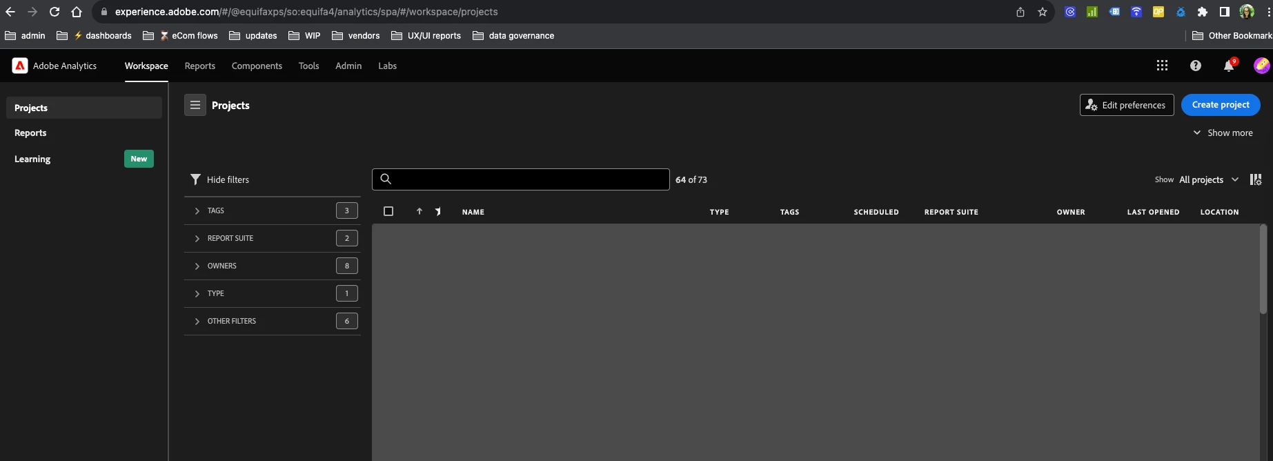 Logged into Adobe Analytics today and was unable to access historical reports. I did log out, reset password and log back in. Confirming I can access historical reports via links, just not through Workspace. Send help.