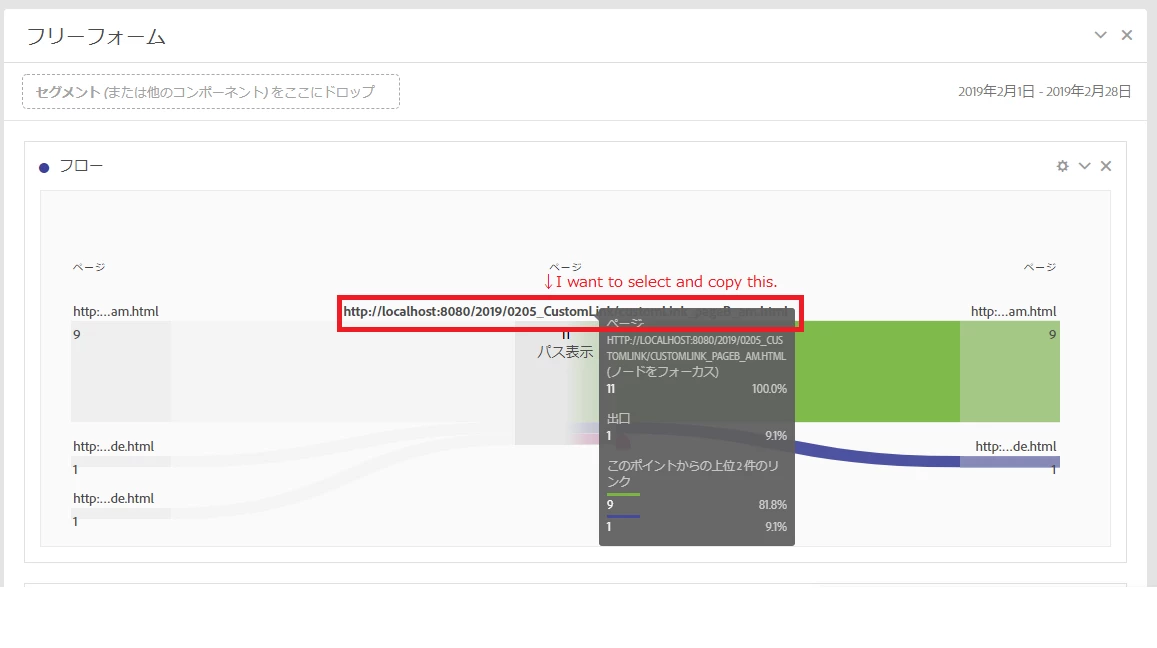 I want to select and copy the pagename displayed in the flow report