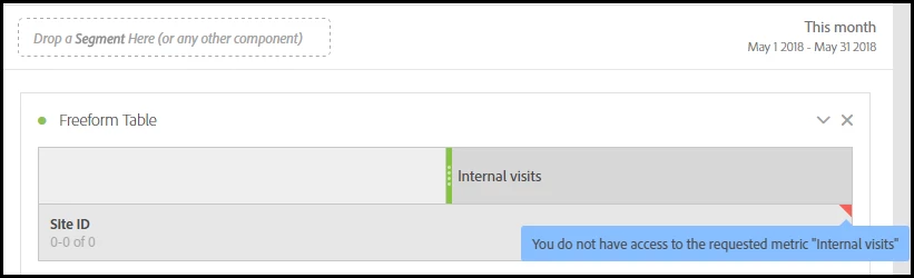 But when I replace the normal visits metric in the report with this new calculated metric, I get nothing, and the message "You do not have access to the requested metric".