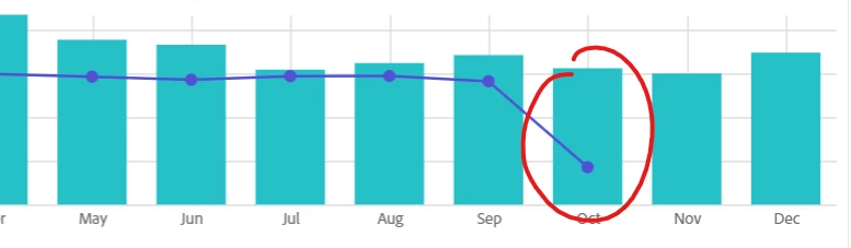I am trying to set up a year over year comparison of Visits. With the dimension either being Week or Month, I want to show, for example all of 2021, but then for 2022, rather than the line dropping to 0 for November and December, is there a way that the line just ends at where it currently is, so we don't see a huge drop until time catches up?