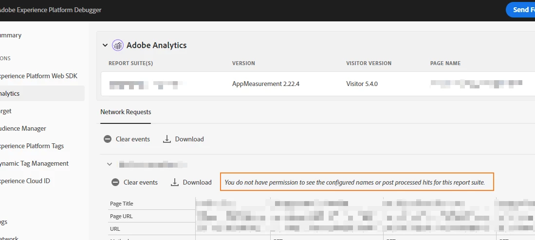 You do not have permission to see the configured names or post processed hits for this report suite