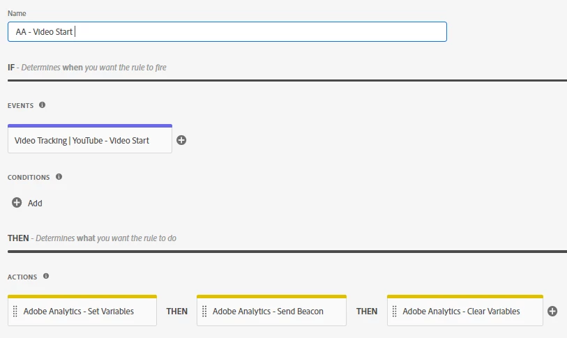 I'm a novice when it comes to using launch ( my background is in advertising so it's always a bit of a challenge). I can't get my Youtube Video Start rule to fire and I'm wondering if anyone can tell me why based on the screenshots below.