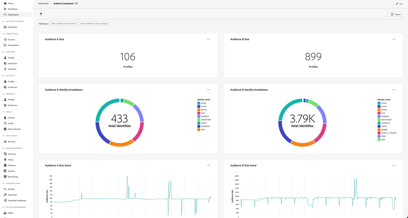 Evaluate audience growth and segmentation effectiveness: Analyze and compare trends of how specific audiences are evolving over time along with identity composition so it can help inform campaign planning and spending allocations.