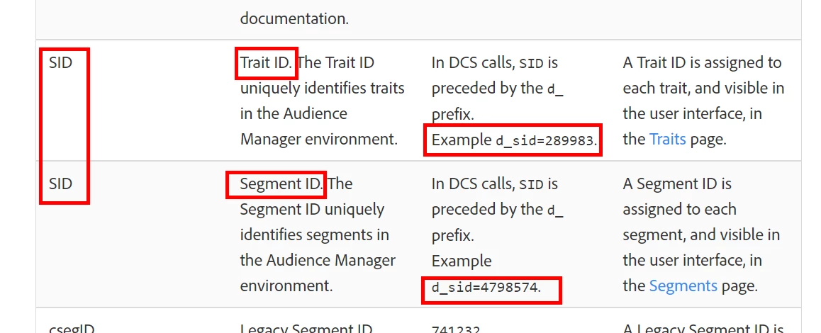 Could someone explain meaning of that the documentation here describes SID parameter as Trait ID or Segment ID at the same time ? How could the same key mean different functionality ?