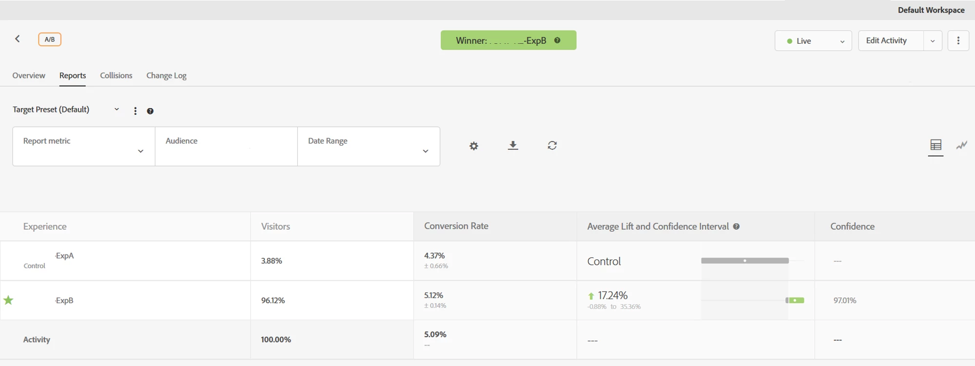 5. Once the report settings have been changed, the audience engagement and overall performance of the experience can be analyzed in two formats – the numerical representation and the graphical representation. Both are shown below.