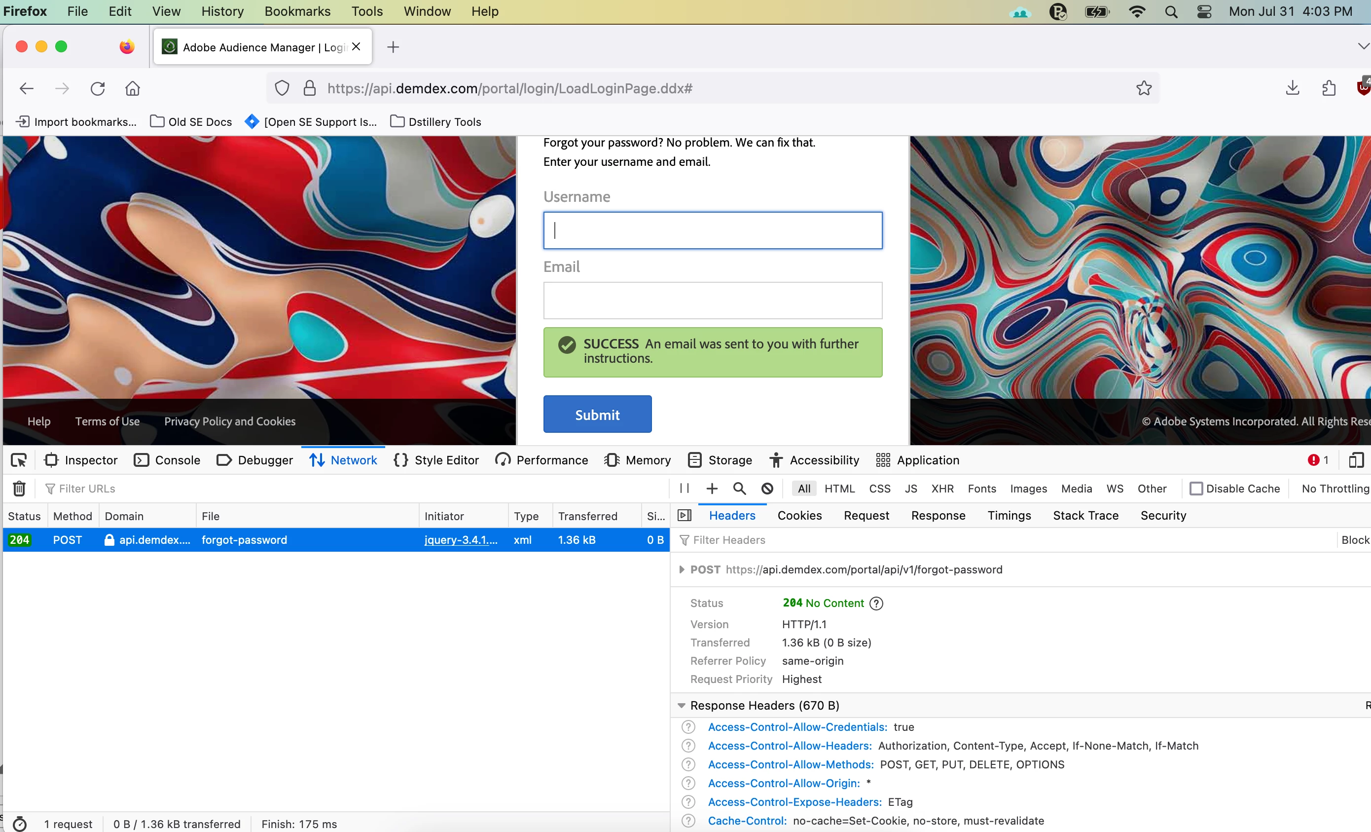I click "Forgot Password", enter my username and email. It says "Success An email was sent to you with further instructions.", but there is no email in my inbox/spam/etc. Others at my organization are experiencing the same issue.