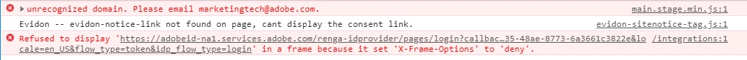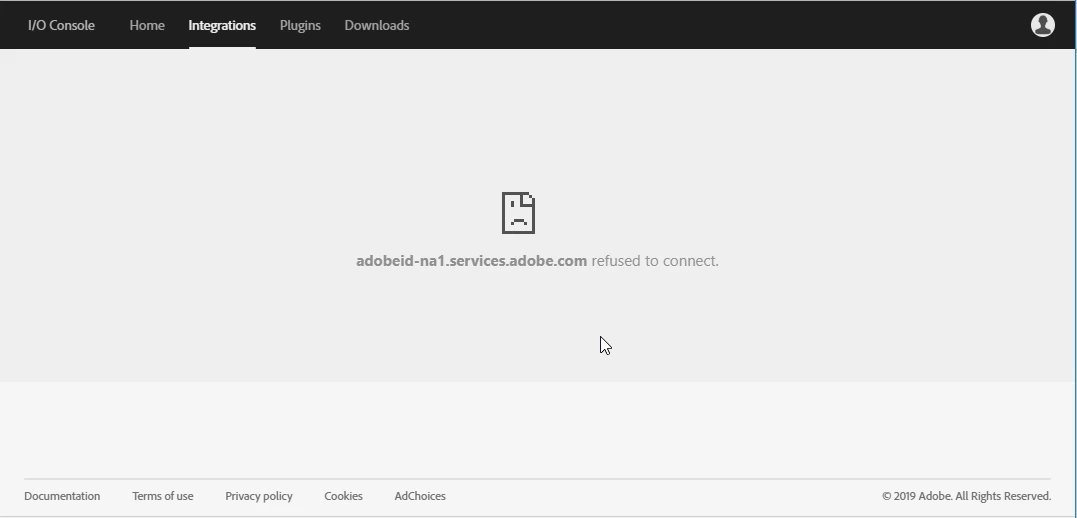 I've encountered an issue today where the Integrations section of the Adobe.IO Console appears to be failing to load.