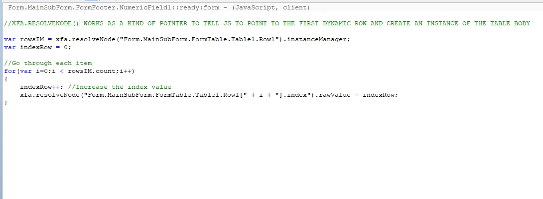 I'm creating a fillable form which also has a dynamic table. I was able to create the dynamic table with no problems, this table contains a cell to display the index row.