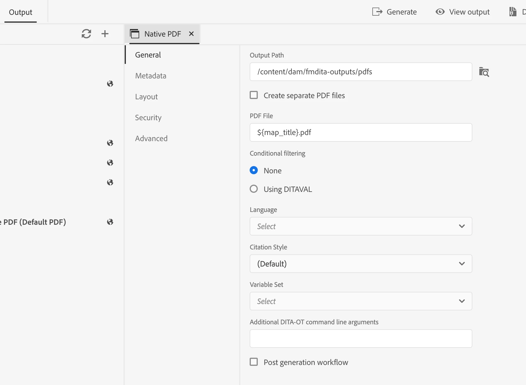 AEM Guides Native PDF: Missing "Create PDF with Change Bar between Published Versions"