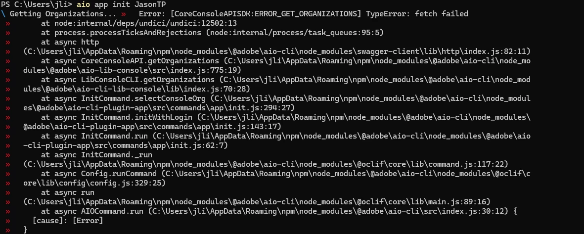 when I try to init the project, it just creates a folder in the directory I am in and then pops up this erros