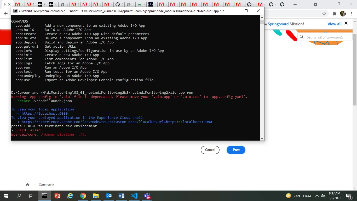I am getting following error while running - aio app run