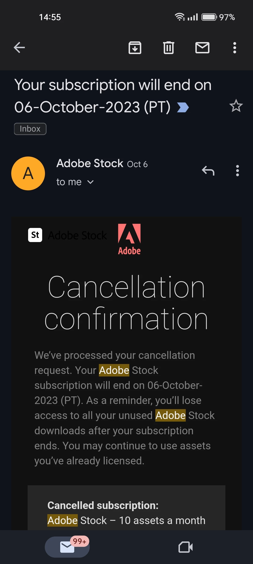 I attached the screenshot of the cancellation confirmation email.