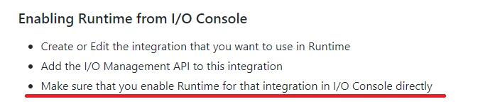 However I believe we are missing one step in the configuration and we never got runtime connected to our I/O console integration.