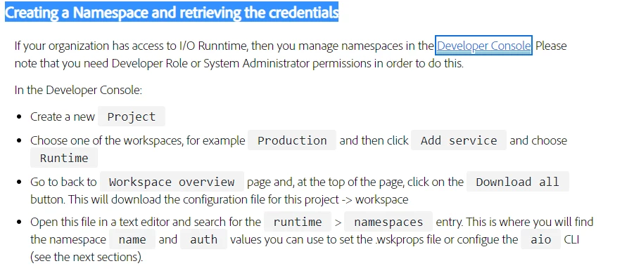 I'm working on POC where I need to access Adobe I/O runtime. I'm following below link to setup my environment