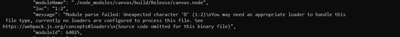 so now in order to support canvas.node file I need to use node-loader but am not able to find webpack.config.js file to update so is there any way I can resolve this?