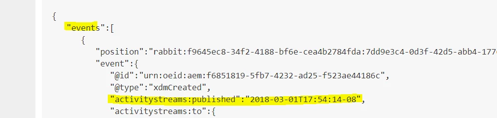 I am using Journaling API ,to captured AEP data ingestion events. In the documentation https://www.adobe.io/apis/experienceplatform/events/docs.html#!adobedocs/adobeio-events/master/api/journaling_api.md, it says we shall get time-stamp as response .