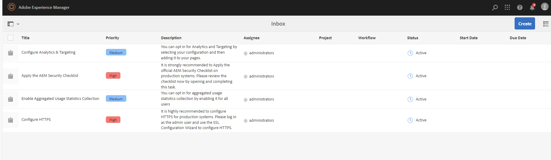 - When you publish the page containing the task, AEM can automatically create the necessary nodes to store that task's information.